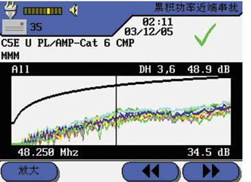 近端串?dāng)_(NEXT)及遠(yuǎn)端串?dāng)_(ELFEXT)測試用于自動測量在電纜近端和遠(yuǎn)端的串?dāng)_。串?dāng)_量過高會導(dǎo)致過多的傳輸錯誤、數(shù)據(jù)丟失和其它問題,致使網(wǎng)絡(luò)系統(tǒng)變慢。